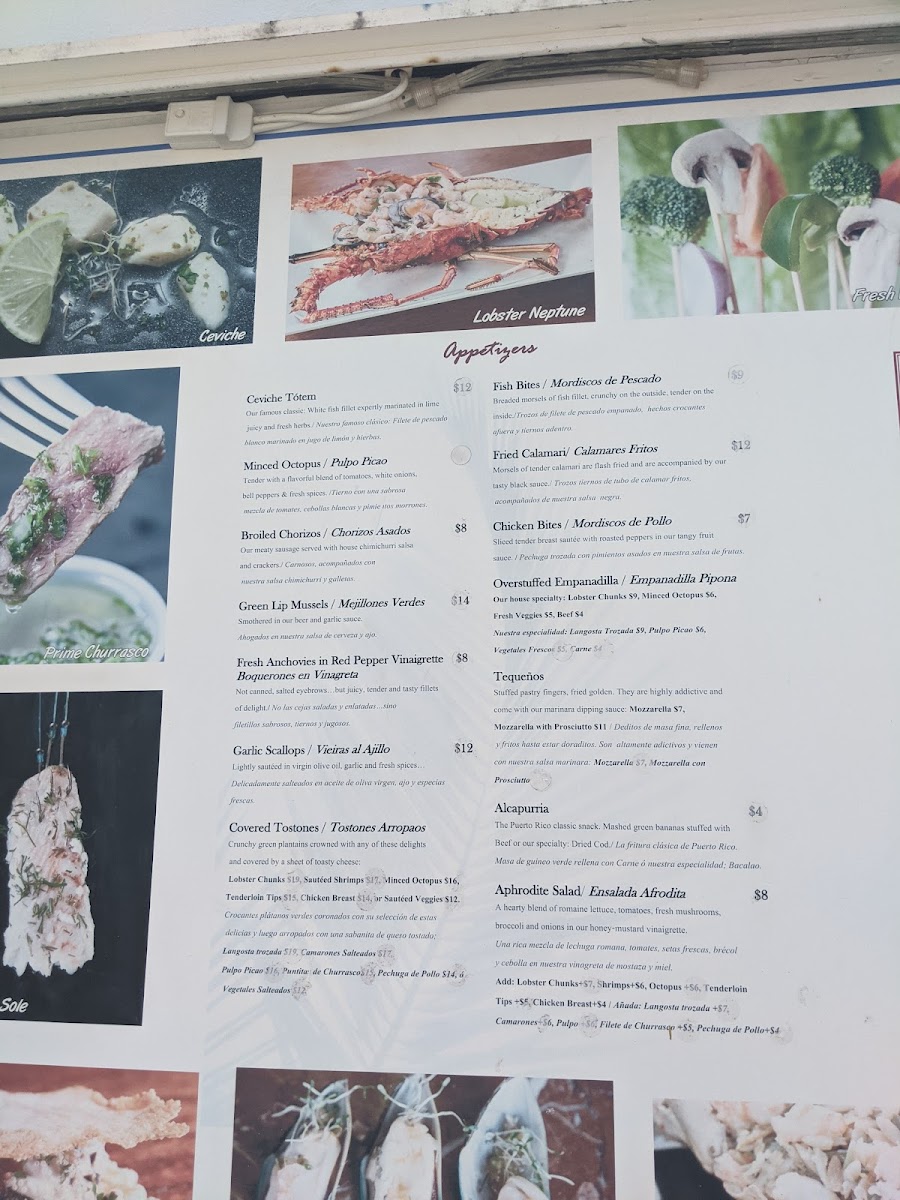 The menu features an appealing mix of seafood, grilled specialties, and classic island dishes. Highlights include fresh lobster prepared in signature styles, grilled giant prawns, and tender steak, alongside popular small plates like empanadillas and ceviche. These dishes pair naturally with the restaurant’s lively yet laid-back atmosphere, making it easy to enjoy a meal at any time of day.